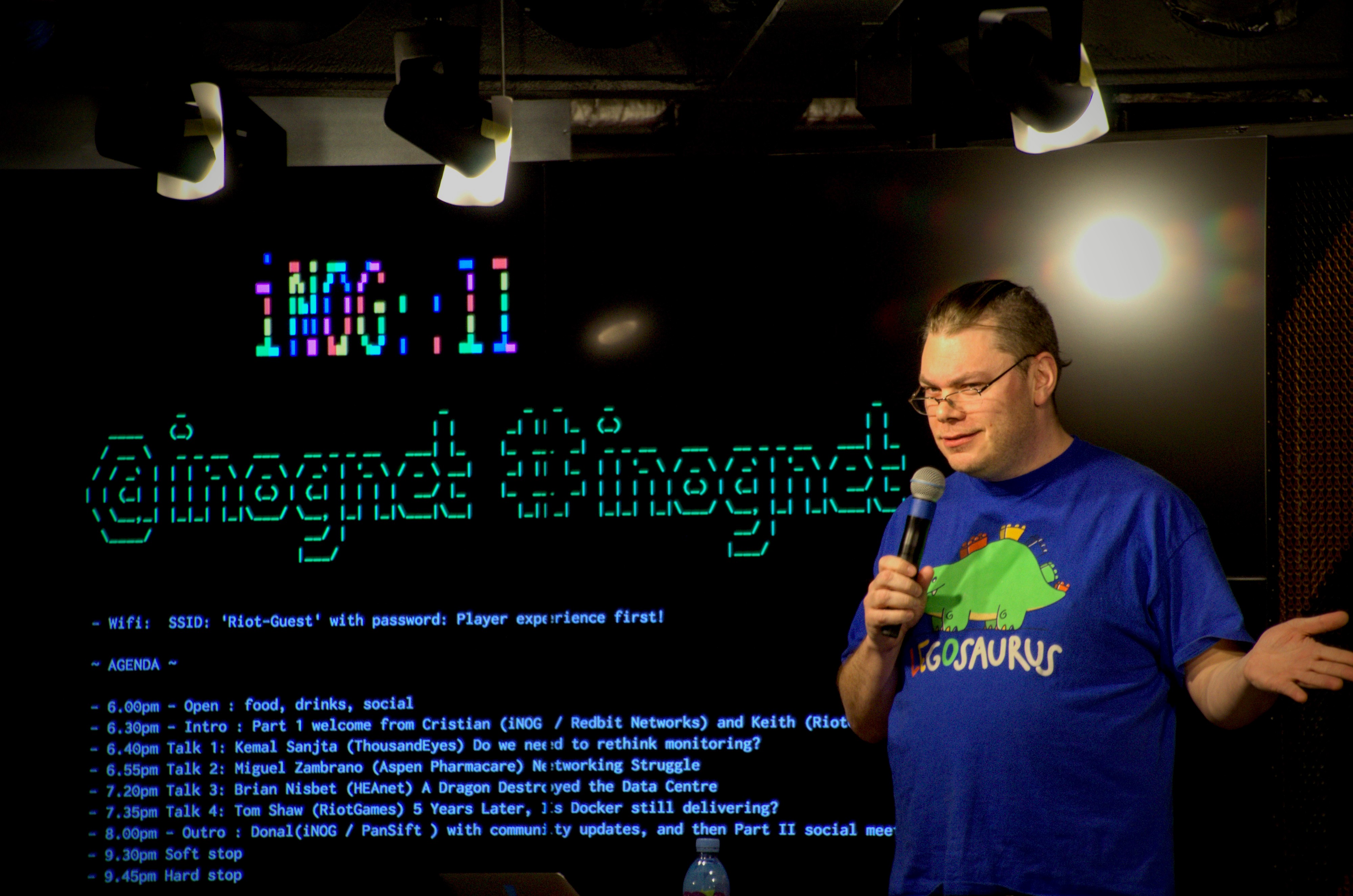 Back for a second time at the gorgeous Riot Games Dublin offices! Our minds were educated and entertained with stories of dragons eating datacentres, community-powered career changes to network engineering, and musings about monitoring challenges and the growth of containers. Thank you dear speakers!