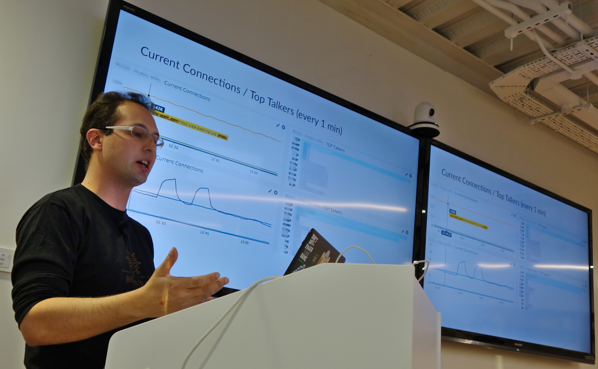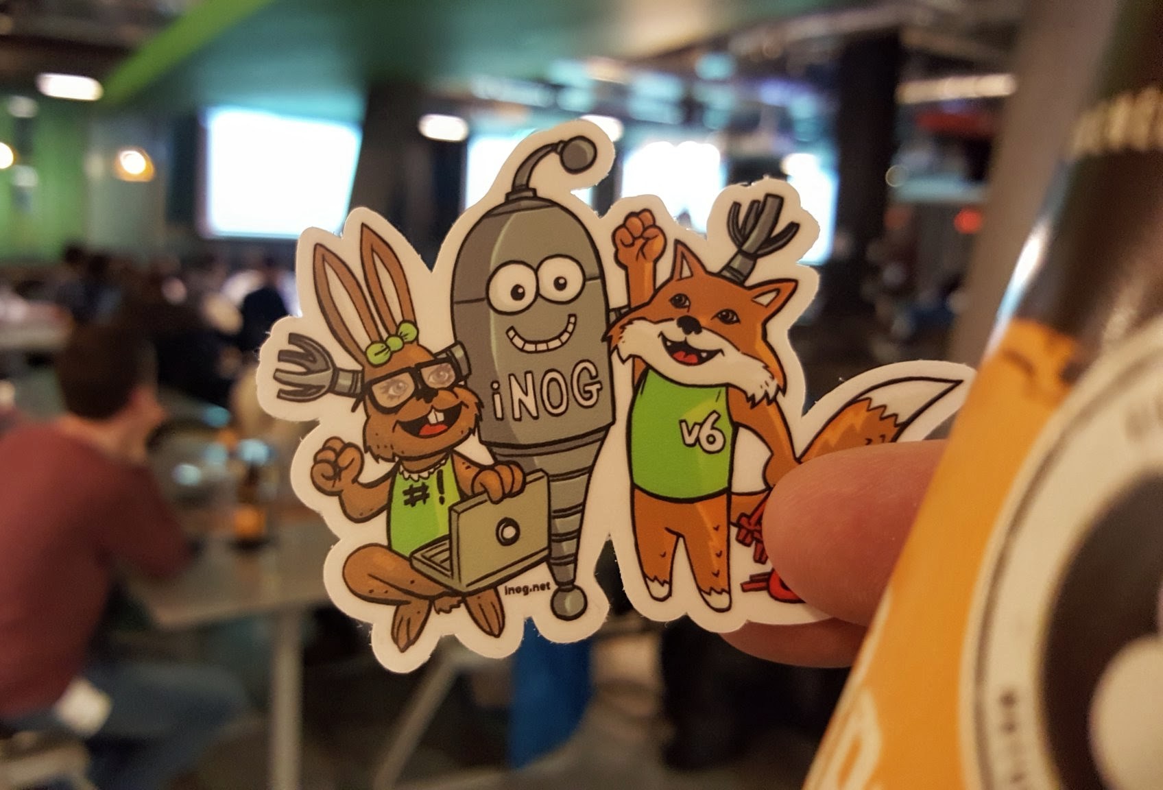 Major thanks to David, Vlad, Sergey, Gary and the rest of the Arista gang for hosting us once again - it was great to be back with double the numbers in a shiny new event space! And our lovely iNOG stickers made a comeback thanks to Brian's generous donation, thank you!